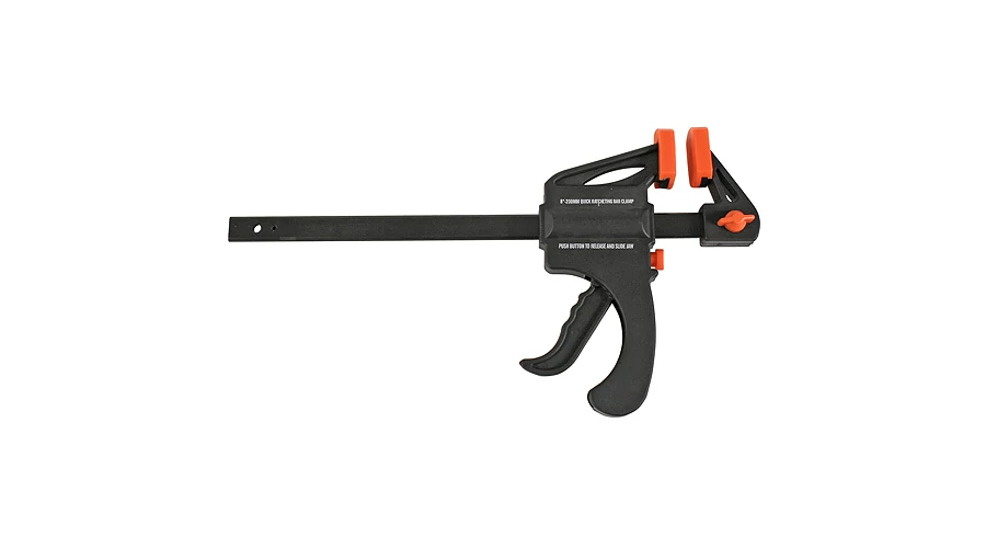 Műanyagból készült asztalos szorító. Rögzítésre és befogásra szolgál az összeszerelési munkák során. Famegmunkálás során használják.