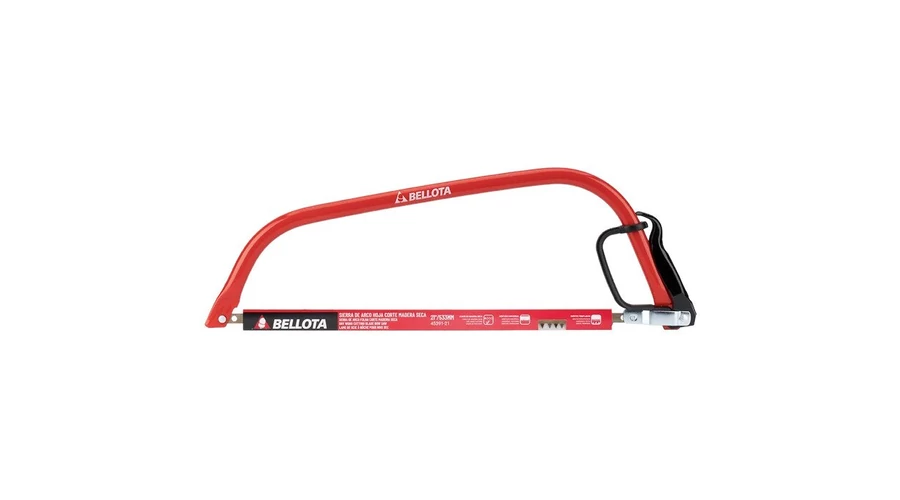 Fém fűrész íj, univerzális fogazott pengével száraz fa vágásához. Megerősített ívrész biztosítja a robusztusságot, és lehetővé teszi az egyenes és könnyű vágást. Kézvédő a teljes biztonság érdekében használat közben.
