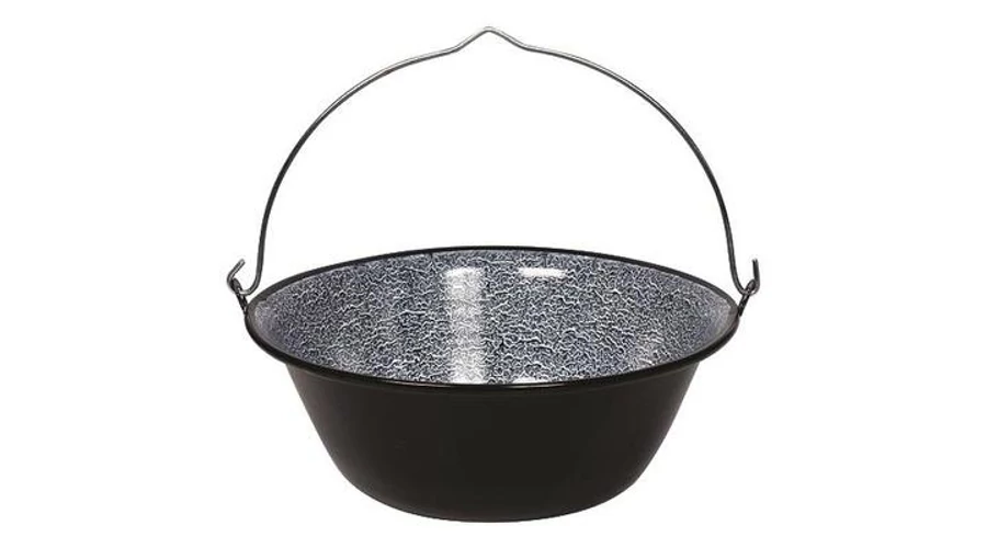 10 literes fémes vízforraló, galvanizált fém fogantyúval ellátott orsóra zománcozott. Alkalmas ételek elkészítésére a természetben, a vízben vagy az otthoni kempingben.
