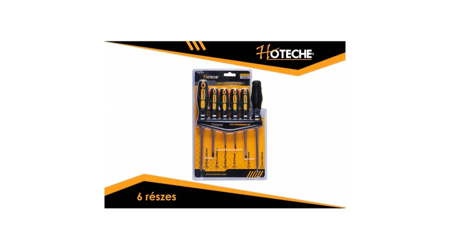 Csavarhúzó klt. 6r CV. mágneses, gumis nyéllel, falitartóval Hoteche
