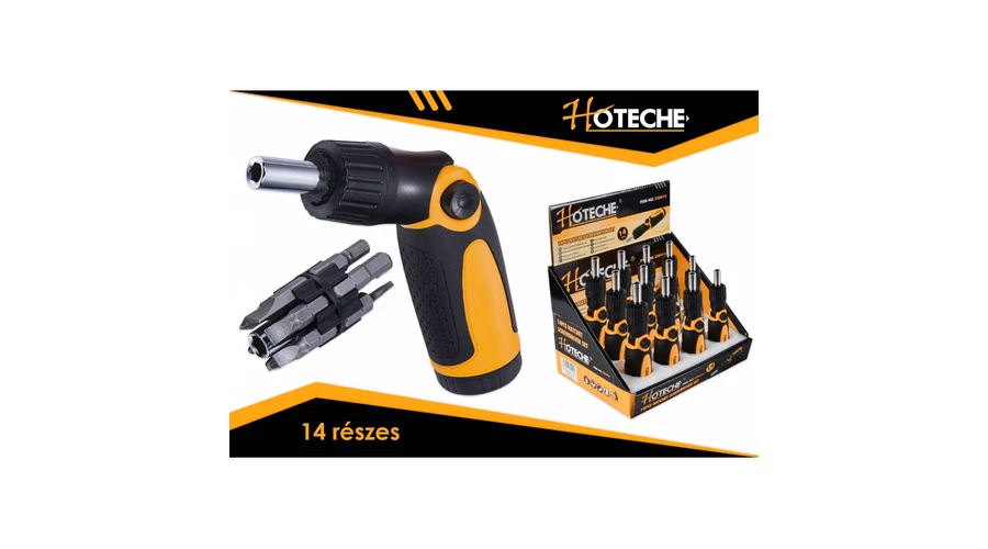 Csavarhúzó klt. racsnis/marok 14 részes, hajlított nyéllel, Hoteche