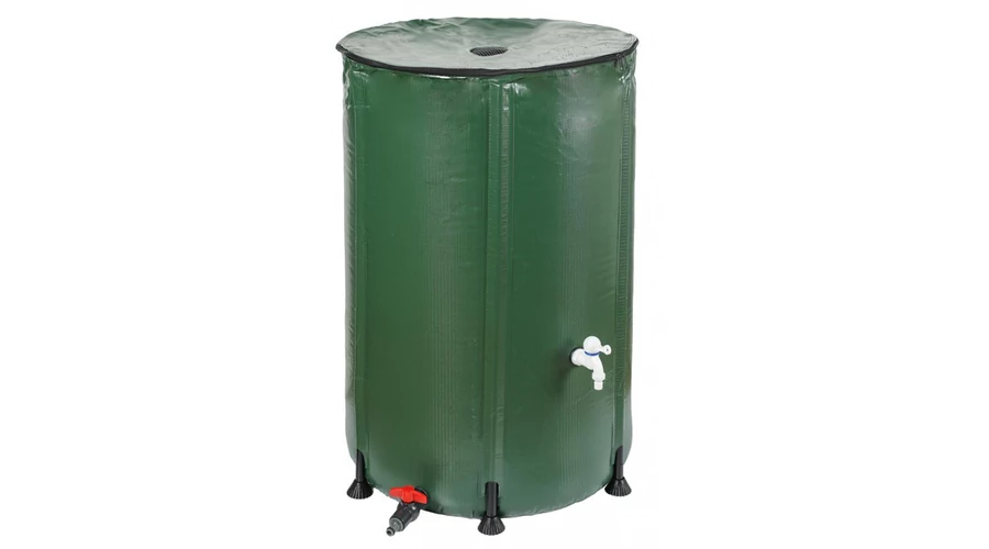 Összehajtható esővíz gyűjtő a tetején szűrővel.