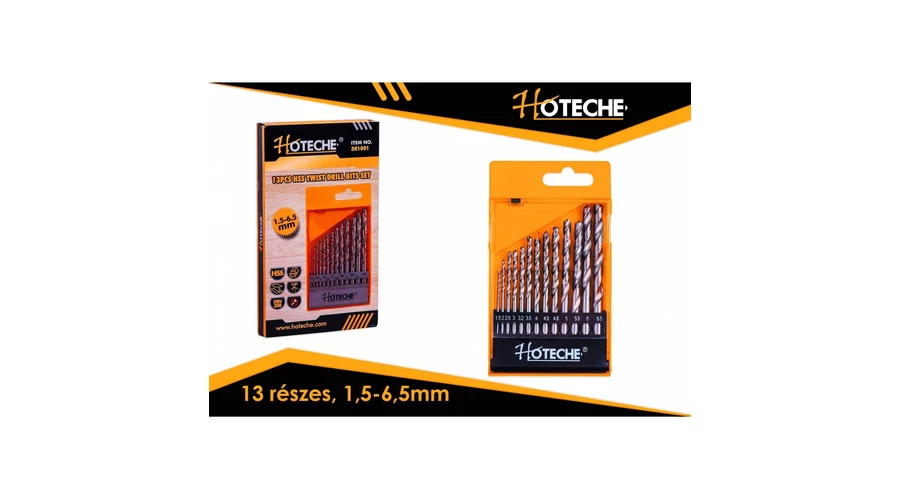 Fúró klt. 13 részes fém HSS-G köszörült, 1,5-6,5mm Hoteche