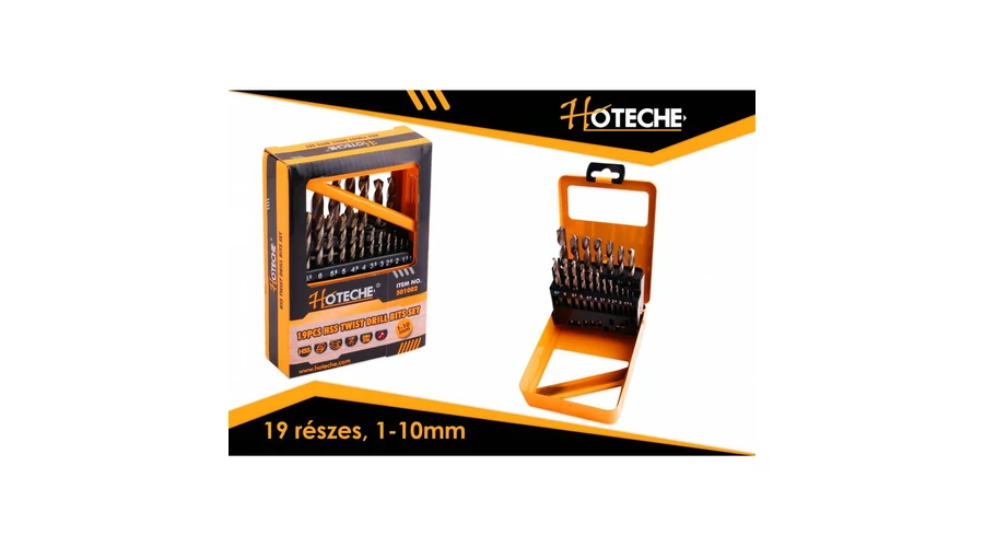 Fúró klt. 19 részes fém HSS-G köszörült, Fém tartódobozzal, 1-10mm Hoteche