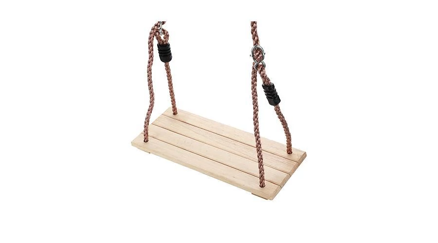 A fából készült hinta a nagyobb gyerekek számára készültek. Teherbírása 100 kg, méretei 40 x 16 x 1,2 cm. A tartó kötél hossza 2 m, átmérője 10 mm.