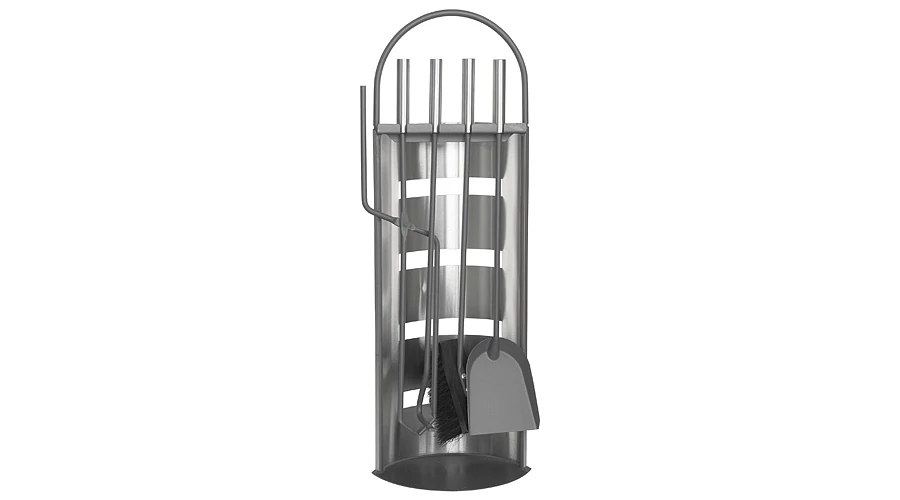4 db-os, rozsdamentes acélból készült piszkavas szett állvánnyal.