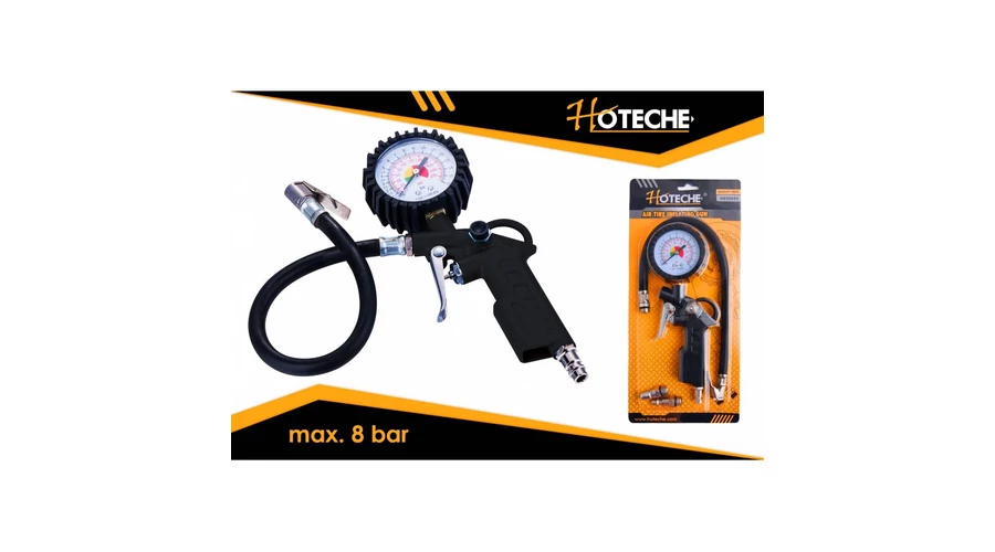 Légnyomásmérő pisztoly, mérőórával max. 8 bar, Hoteche