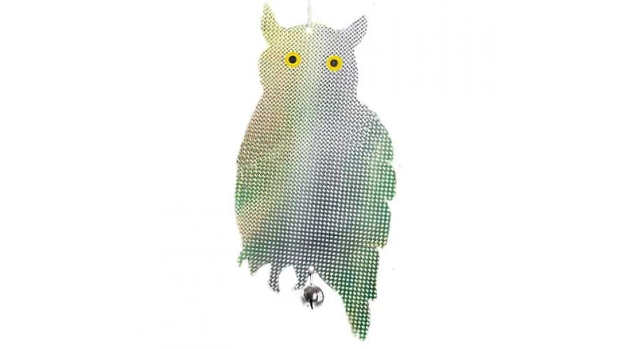 A fényvisszaverő riasztó bagoly ideális galambok, seregélyek, feketerigók, verebek és más apró madarak elriasztására. A szélben mozgó harang hangot ad, ami elriasztja a madarakat, a fényes felület pedig visszaveri a napfényt.