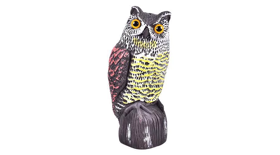 Kiváló minőségű műanyagból készült madár riasztó bagoly, amely ellenáll az UV sugárzásnak. Csillogó szemei és élethű formája növeli a hitelességét. 36 cm.