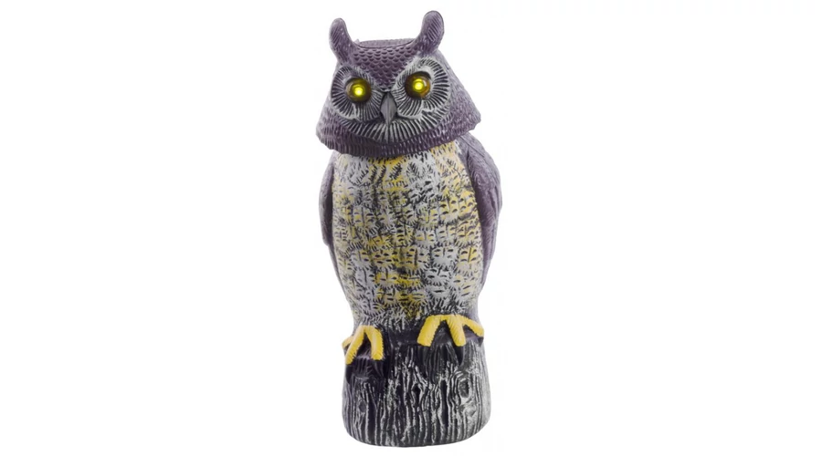 Kiváló minőségű műanyagból készült, napelemes madár riasztó bagoly, amely ellenáll az UV sugárzásnak. Mozgásérzékelő által aktiválódik. Világító szeme, hangja és forgó feje még hitelesebbé teszi megjelenését.