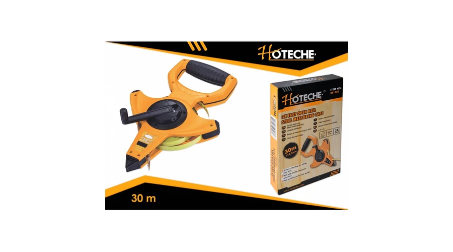 Mérőszalag 30m földmérős, fém szalaggal, Profi Hoteche