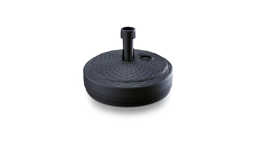 A napernyőtalp erős antracit alapú műanyagból készült, mely ellenáll mindenféle időjárási viszontagságoknak. Tömege mindössze 681 g. A kör alakú talapzat feltölthető vízzel, vagy homokkal, így az azelőtt könnyű szerkezet, most elegendő támaszt nyújthat a ráhelyezett napernyőnek. A talapzat térfogata 10 l, méretei 390 x 390 x 310 mm. 10 és 26 mm átmérőjű napernyő rúddal kompatibilis. Egyszerűen elég egymásba csúsztatni őket és csavarással rögzíteni.