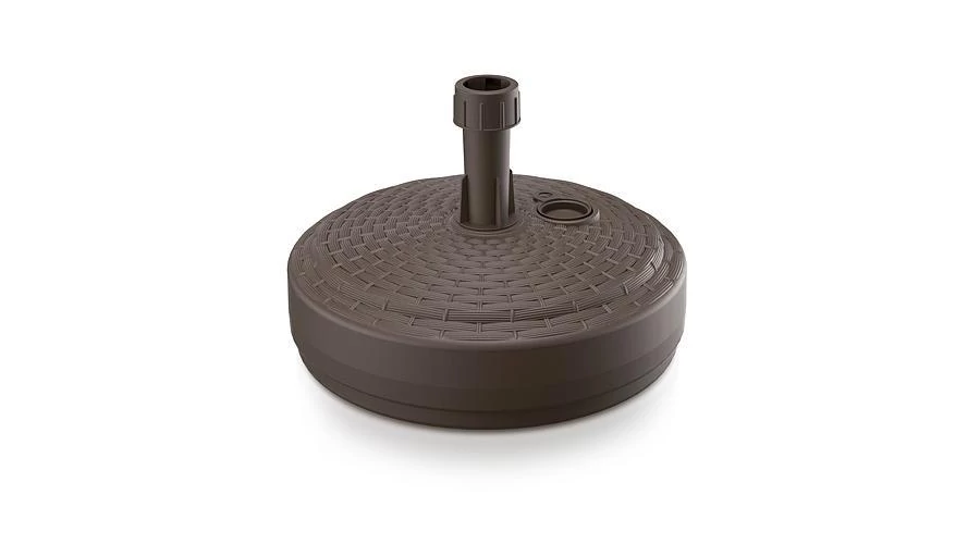 A napernyőtalp erős, barna színű műanyagból készült, mely ellenáll mindenféle időjárási viszontagságoknak. Tömege mindössze 681 g. A kör alakú talapzat feltölthető vízzel, vagy homokkal, így az azelőtt könnyű szerkezet, most elegendő támaszt nyújthat a ráhelyezett napernyőnek. A talapzat térfogata 10 l, méretei 390 x 390 x 310 mm. 10 és 26 mm átmérőjű napernyő rúddal kompatibilis. Egyszerűen elég egymásba csúsztatni őket és csavarással rögzíteni.