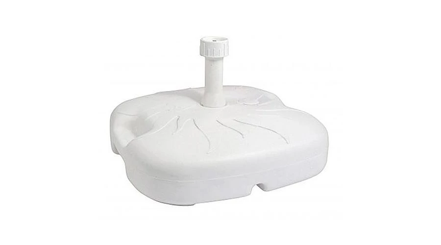 A napernyőtartó semleges fehér színű műanyagból készült. A talapzat négyzet alakú, 25 x 32 cm méretű. Tömege 1,05 kg. Miután egymásba csúsztatta a napernyőt és a talapzatot, rögzítse a rúd oldalán található csavarral.