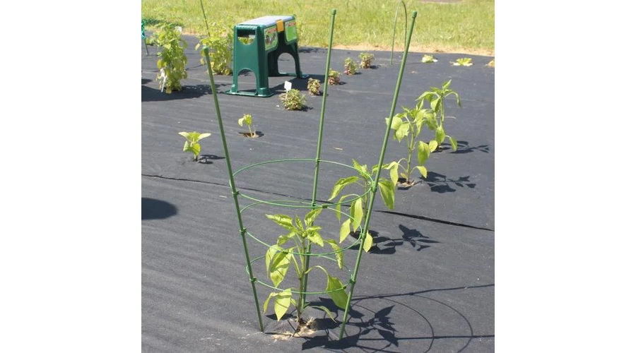 - A karókkal ellátott gyűrűs növénytámaszték kiválóan alkalmas cserepes növényekhez és virágágyásokhoz.