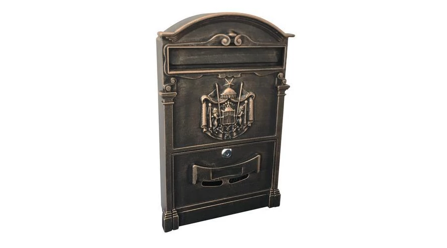 Elegáns postaláda, antik bronz színben. Anyaga alumínium.