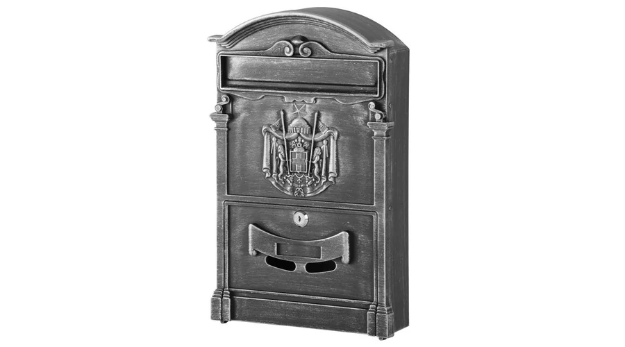Elegáns postaláda, antik szürke színben. Anyaga alumínium.