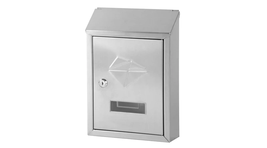Elegáns, nemesacélból készült postaláda, hátsó nyílással a leveleknek.