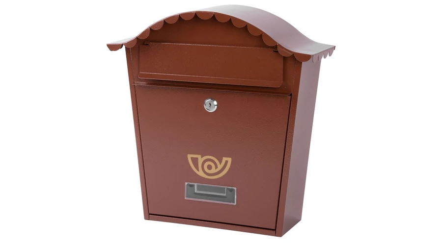 Elegáns barna, fém postaláda zárral. Méretek: 37 x 14 x 37 cm.