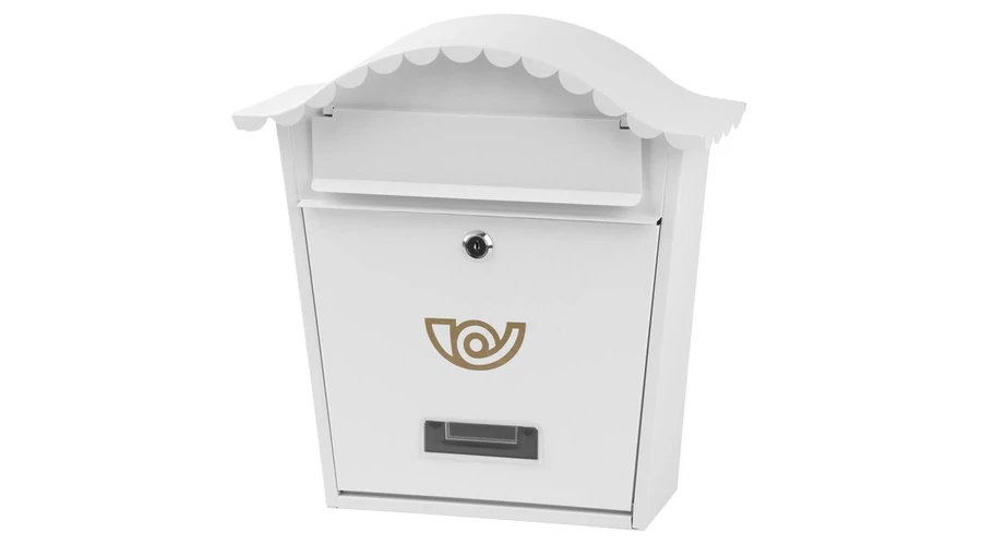 Elegáns, fehér, fémből készült postaláda, zárral.