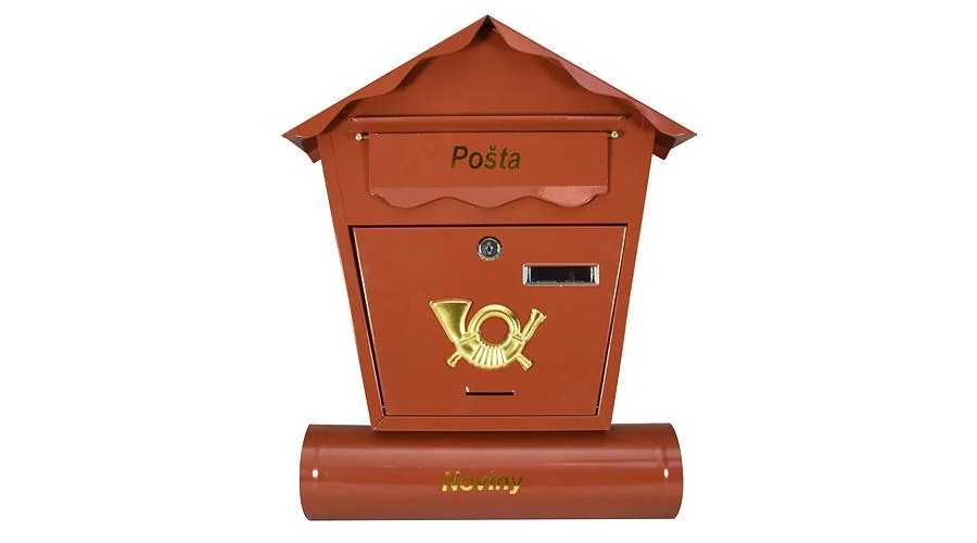 Elegáns barna postaláda. Tartalmaz egy külön rekeszt, röplapokra. Anyaga fém.