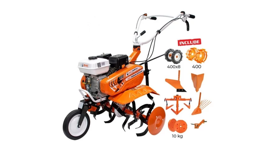 A DAC 7000K félprofesszionális talajművelő a tartozékok széles skálájának felszerelését teszi lehetővé, mint például: egybarázdás eke, borona, burgonyaeltávolító, kultivátor, hóvágó, dobos kaszarendszer, vetőgépek, fém vagy gumi kerekek, teherhordó pótkocsi 500 kg-ig.