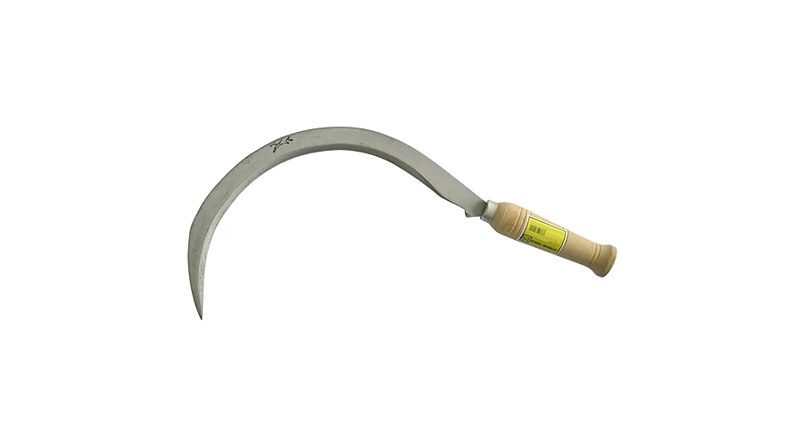 Klasszikus fogakkal ellátott sarló fa nyéllel, kis fű és gyógynövények nyírására. Fogazott pengéje növeli a sarló hatékonyságát.