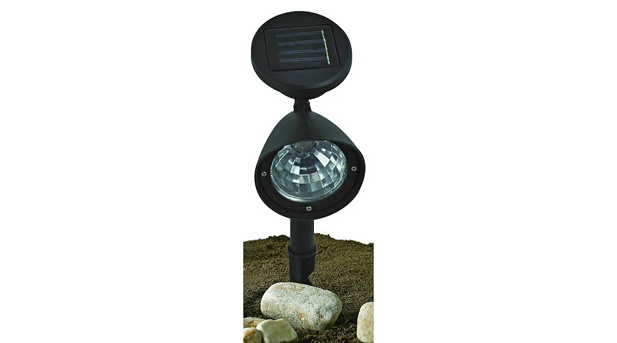 Kültéri használatra szánt napelemes lámpa spot világítással.