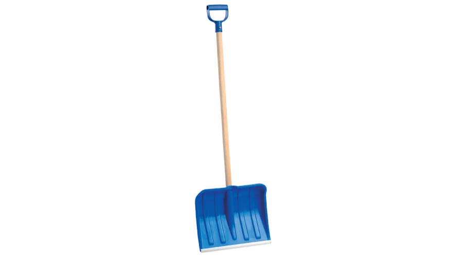 Profi hólapát. Fém élvédővel, fa nyéllel. Kék színű.