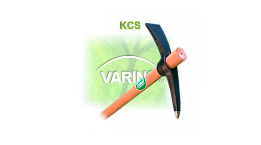 Korrózióálló festékkel bevont kis csákány, kovácsoltvas fejjel, keményfa nyéllel.