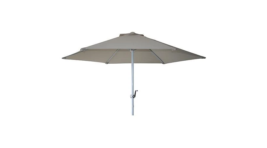 Egész szerkezete erős acélból készült. A tartórúd hossza 218 cm, átmérője 34/34 mm. Az ernyő kellemes bézs színű, poliészter anyagból készült, mely megfelelő védelmet nyújt a napsugarak, szél és eső ellen. Átmérője 230 cm, a tartó bordák átmérője 8 x 16 mm. A napernyő nem hajlítható és csapószelepek nélküli. Fogantyú segítségével könnyen szétnyitható és összezárható. Tömege 4,4 kg.